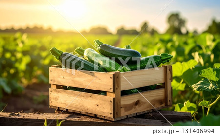 Zucchinis in Wooden Crate