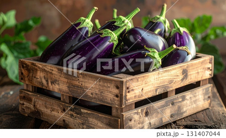 Eggplants in Wooden Crate