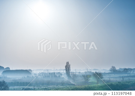 埼玉縣見沼稻田裡的寒冷冬日早晨