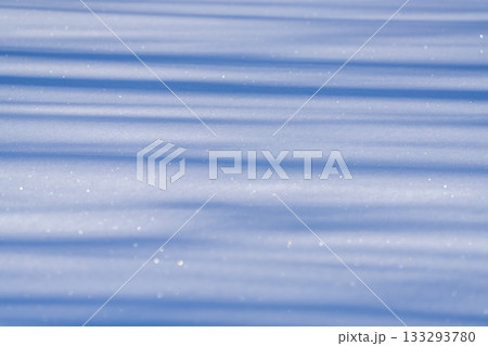 一張風景照片,捕捉了北海道雪地上冬日樹木投射的柔和藍色陰影和光影圖案。