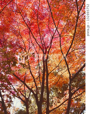 秋日里,紫薇樹葉鋪滿天空,染上五彩繽紛的秋色。