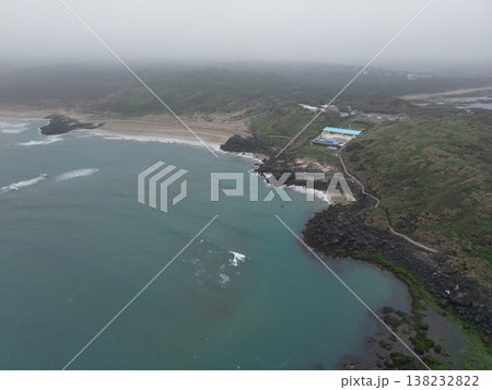 橙色的夕陽透過海岸線上遺留的貝殼縫隙灑下。