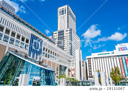以藍天為背景的札幌車站南口“JR塔”和“札幌星廣場”