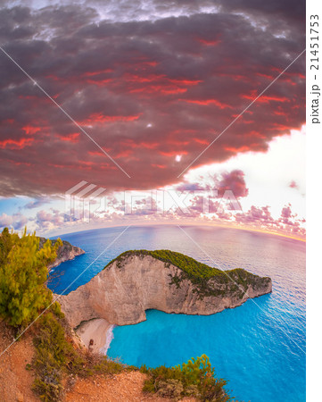 Shipwreck beach. Navagio Beach at sunset on Zakynthos, Greece.