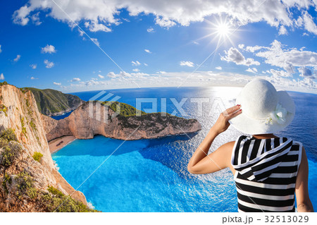 Woman on Porto Zorro beach on Zakynthos, Greece