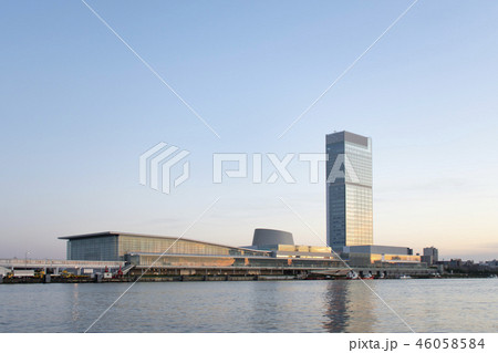 晴天時,新潟縣新潟市、新潟萬代島大廈、朱鷺展覽館(新潟會議中心)