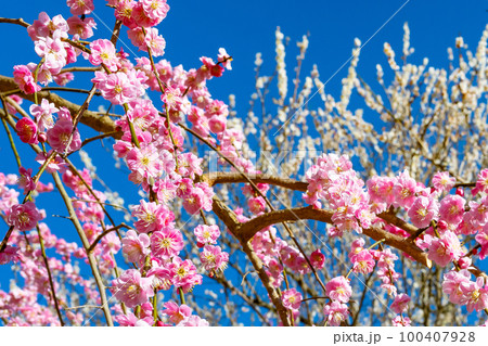 稻部市白林公園垂枝梅盛開