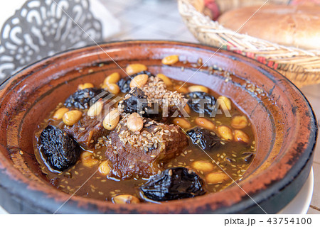 牛肉和西梅tagine在摩洛哥餐廳吃