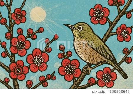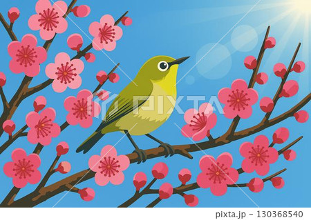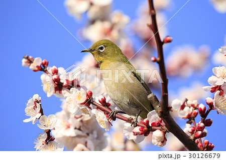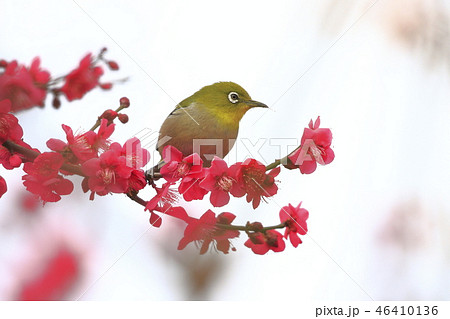 Mejiro停在盛開的白梅