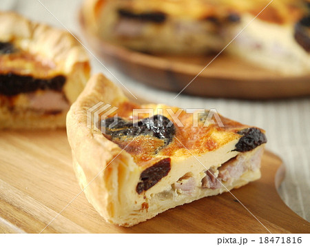 鹽豬肉和李子的乳蛋餅木板(水平位置)