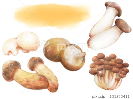 水彩畫的杏鮑菇和松茸菇插圖素材集