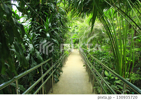 Thuja, juniper and pine trees grow in city botanical garden. Plantings in park