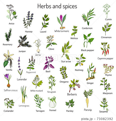Hand drawn set of culinary herbs and spices