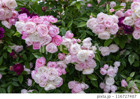 花園裡盛開的美麗的粉紅色杯狀玫瑰花