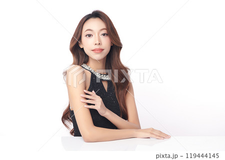 Beautiful young asian woman with clean fresh skin on white background, Face care, Facial treatment, Cosmetology, beauty and spa, Asian women portrait.