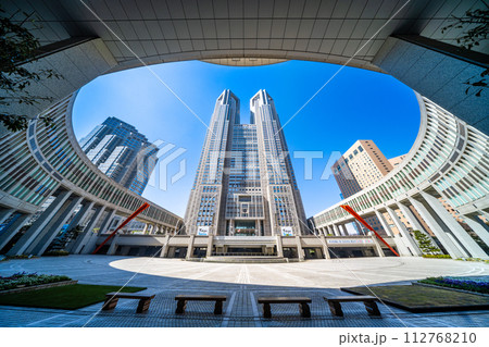 新宿區、東京都政府大樓的東京城市景觀和西新宿大樓在陽光明媚的日子