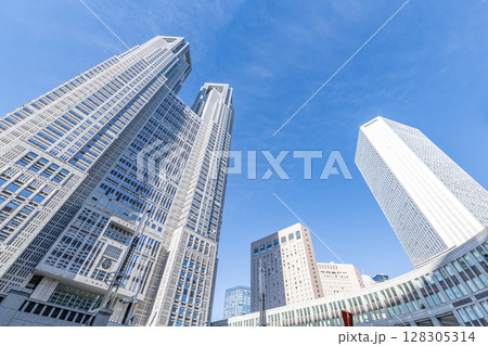 新宿西口的摩天大樓映襯著藍天[東京都政府第2廳舍]