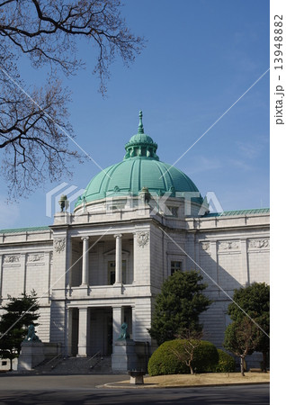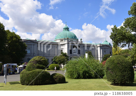 東京國立博物館主樓及其前方花園中美麗的池塘,可遠眺上野公園的美景,傳統日式建築與現代建築在此和諧共存。