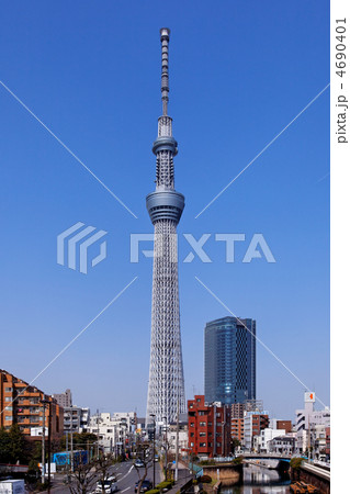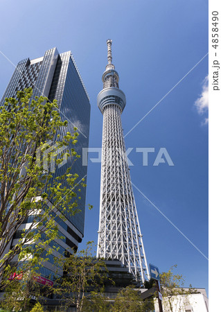 東京天空樹城塔庭院和藍天蔓延的比爾街