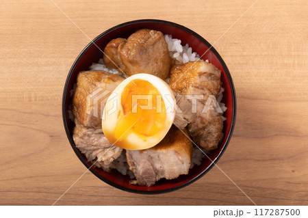 紅燒肉塊和水煮蛋在鍋裡慢燉