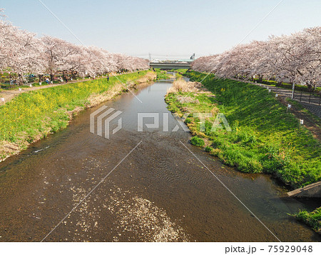 埼玉縣四季市柳瀨川的一排櫻花樹