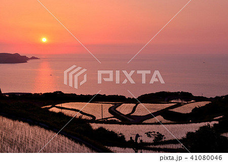 山陰海和梯田的日落