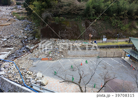 鳥瞰圖2017年10月31日在九州北部的強降雨之後的Higashimine村莊高塚