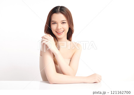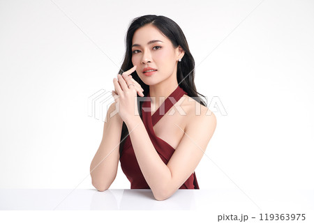 Beautiful young asian woman with clean fresh skin on white background, Face care, Facial treatment, Cosmetology, beauty and spa, Asian women portrait.