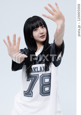 Korean Woman in Her 20s Poses With Her Palm in Block Core fashion