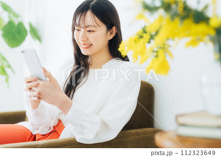 Young modern Asian woman doing house cleaning at home. Confident and independent homemaker maintaining a clean, stylish living space.