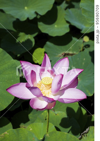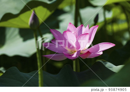 Close-up of the lotus flower with lotus leaves background