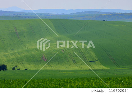 中歐捷克共和國南摩拉維亞基約夫附近的摩拉維亞草原,顏色不斷變化的丘陵景觀
