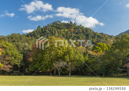 從日本島根縣出雲市大社町的出雲大社神社眺望彌山