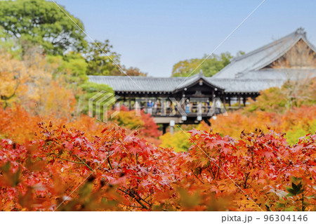 京都府京都市秋天的東福寺、秋葉和圓月橋