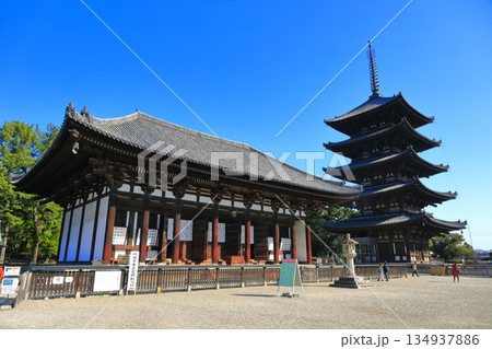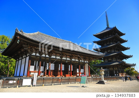 [奈良縣]晴天的興福寺(東金殿和五層塔)