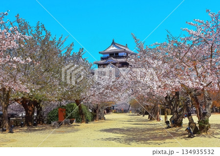 [愛媛縣]春天櫻花盛開的松山城(現存天守閣)