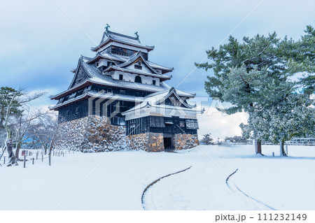 島根縣松江市,國寶松江城天守閣,櫻花盛開,晴空萬裡