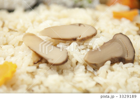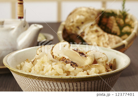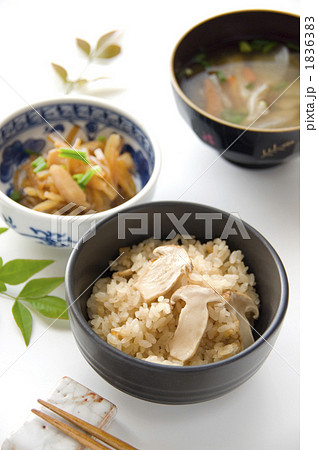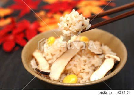 用碗和筷子盛放的溫熱松茸米飯的插圖