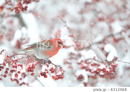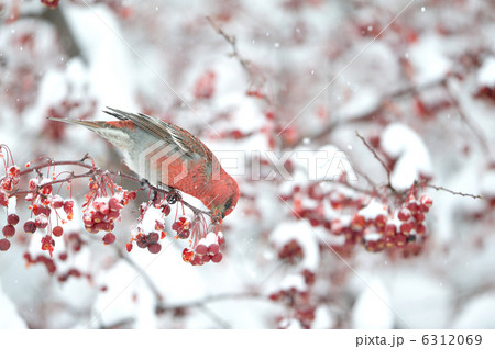 灰色注連繩、長尾山雀和山茶花環(新年裝飾)