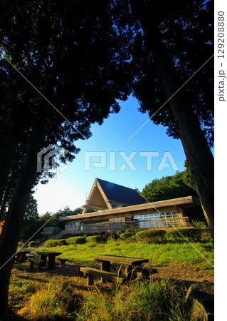 被夕陽照亮的野山休息所