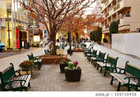 懷舊的Nakazakicho Snap樹木繁茂的商店和長凳