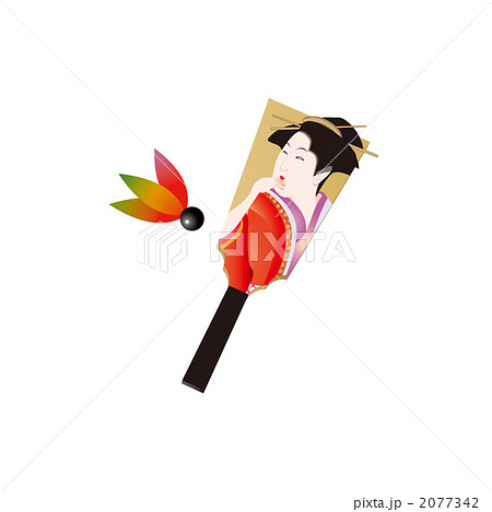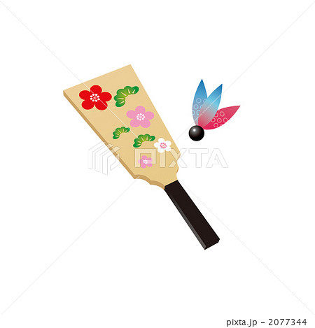 簡單的圖示向量插圖羽子板和羽根月新年幸運符日本風格