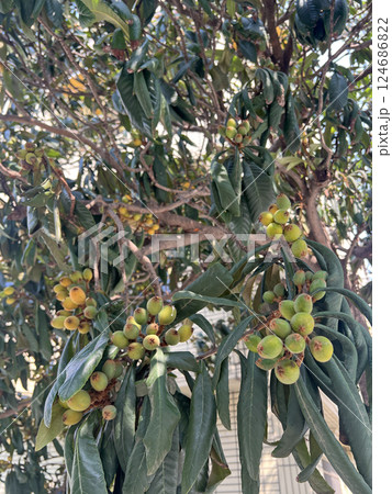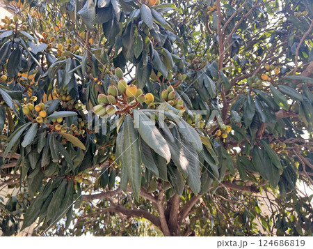 在戶外拍攝枇杷樹上長滿了未成熟的枇杷果實