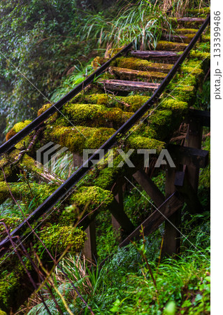 宜蘭見晴古道中被苔蘚覆蓋的荒廢運材鐵道