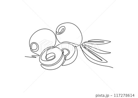 Single one line drawing of pile healthy organic olive fruit for orchard logo identity. Freshness core ingredients concept for fruit icon. Modern continuous line draw design graphic vector illustration