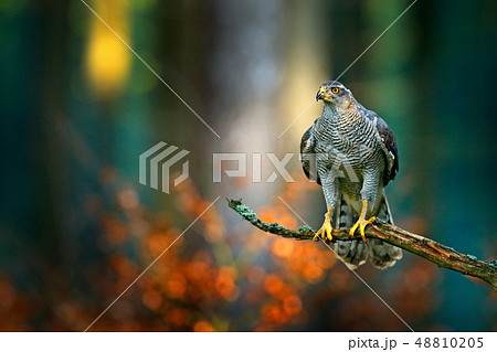 Bird in fall forest. Goshawk, Accipiter gentilis