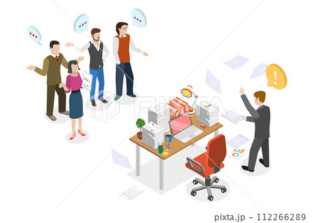 3D Isometric Flat Conceptual Illustration of Assertive Communication, Conflict and Troubles at Work