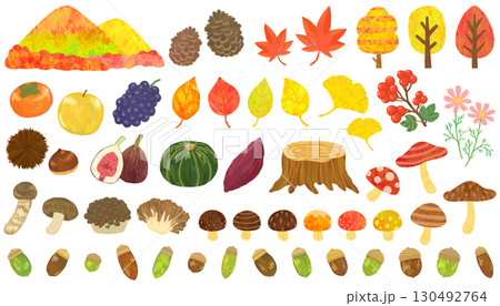 Autumn composition. Autumn leaves and corn, pine cone, anise star. Flat lay, top view, copy space
