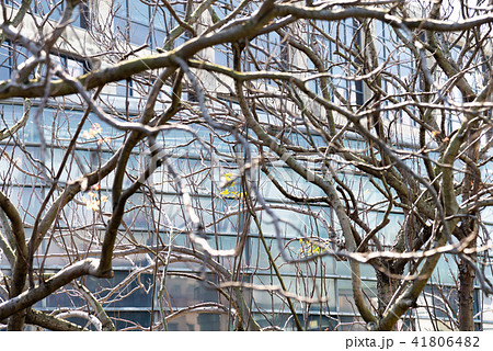 冬季的枯木與建築 冬の枯木と建築 Dead Branches in Front a Building