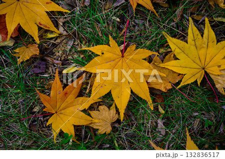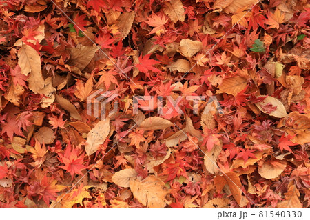 Carpet of fallen leaves lying on the ground in the autumn forest.